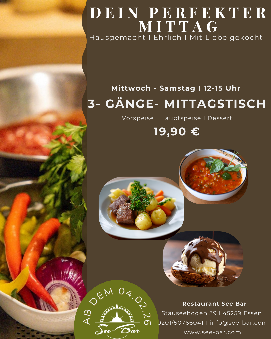 In der See-Bar gehen Genuss und Saison Hand in Hand. Unsere Speisekarte wechselt mehrmals im Jahr, damit wir euch stets frische Gerichte mit saisonalen Zutaten anbieten können. Was im Sommer leicht und mediterran daherkommt, wird im Herbst schön herzhaft und im Winter gemütlich-deftig – so wird es nie langweilig auf dem Teller. Unser Küchenchef und sein Team lassen sich von der Jahreszeit und internationalen Trends inspirieren, ohne die Heimat zu vergessen. Das Ergebnis ist eine abwechslungsreiche Mischung aus regionalen Klassikern und kreativen neuen Kreationen. Und das Beste: Alles wird mit Liebe und frischen Produkten zubereitet, die wir sorgfältig auswählen.